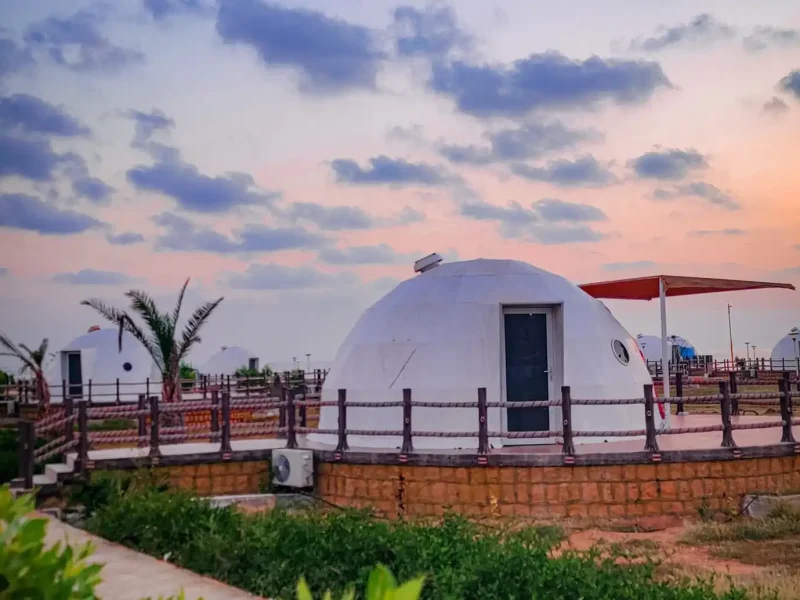يقع منتجع وشاليهات المارينا السياحية في قلب مدينة المارينا على البحر مباشرة، ويعد وجهة مثالية للعائلات والأشخاص والباحثين عن الراحة والمبيت، يضم المنتجع مجموعة متنوعة من الشاليهات، منها شاليهات بمسابح خاصة للعائلات، وأكواخ مطلة مباشرة على البحر تتنوع بين شاليهات للمبيت وشاليهات مجهزة بمجلس عربي مخصص للمقيل والاستراحة.